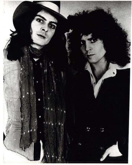Later in 1967 Marc and percussionist Steve Peregine Took formed an acoustic duo called Tyrannosaurus Rex. They made three albums, "My People Were Fair and Had Sky in Their Hair but Now They're Content to Wear Stars on Their Brows" (1968), "Prophets, Seers and Sages, the Angels of the Ages" (1968), and" Unicorn" (1969), then following an acrimonious American tour, split up. Steve Took died tragically in 1980 after choking on a cherry stone. It is alleged as a direct result of using a Tyrannosaurus Rex royalty cheque to purchase drugs. Marc brought in Mickey Finn as a replacement for the new album Beard of Stars (1970). This album also returned Marc to his electric roots, amid comments about him "selling out" like his hero Bob Dylan. |